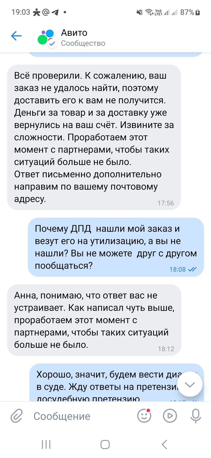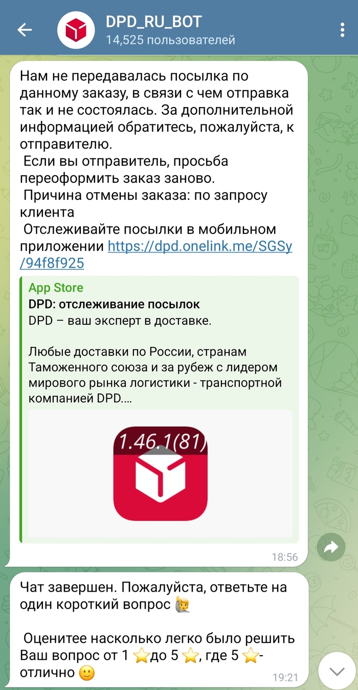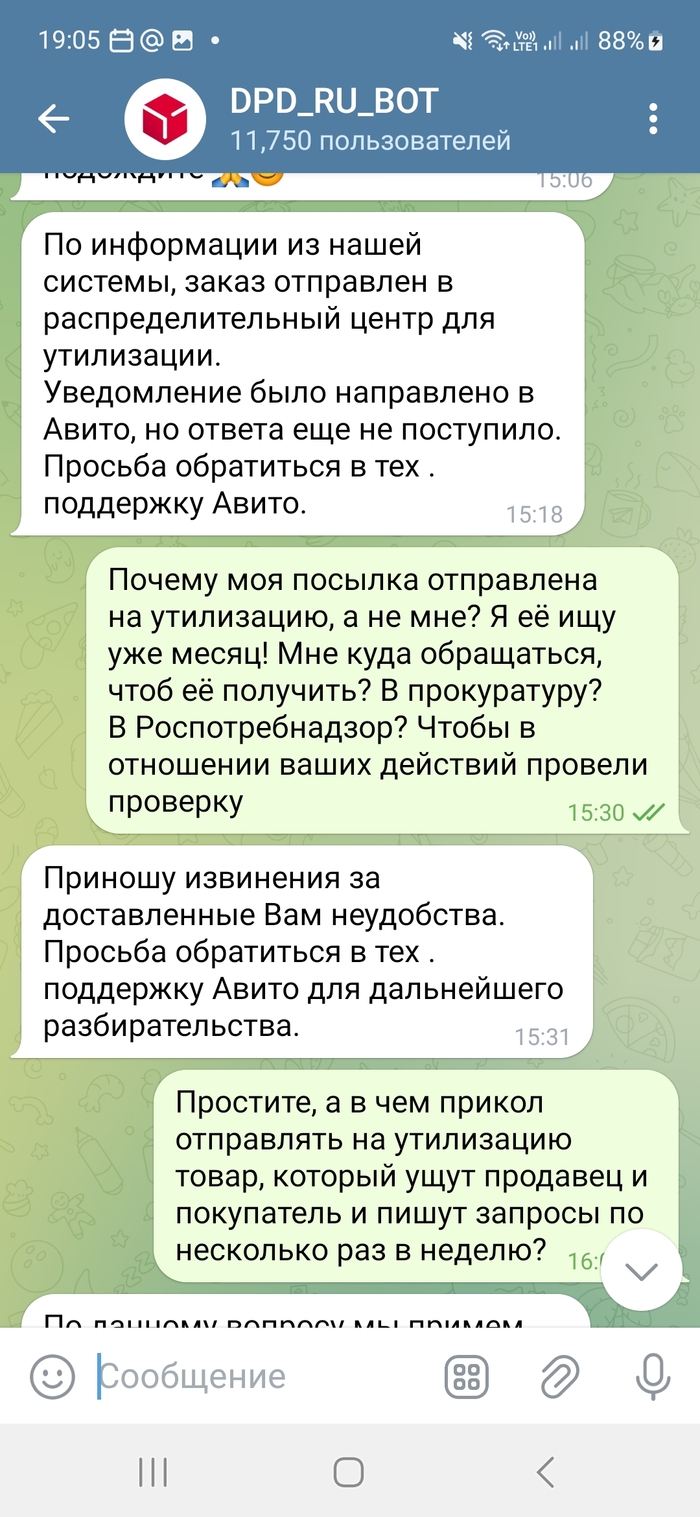 Все вроде понятно. Но я из 90-х, ребят, верю только себе. Пишу в чат DPD (тот, что в телеге) и началось: