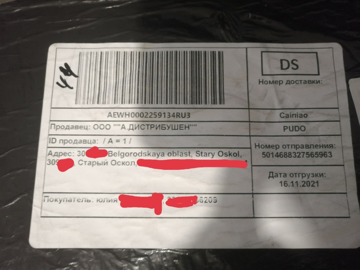 Заказ Aliexpress AEPU0007287369RU2/58973514376 получите: Старый Оскол Интернациональный 12А Пункт выдачи пн-пт 9-20, сб-вс 10-20 Хранение до 30.12 Пин-код:****
