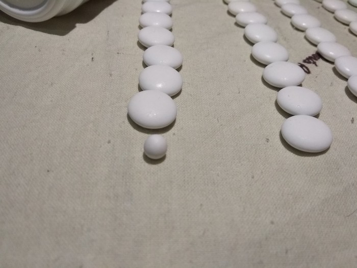 Фото в сравнении с неиспользованной таблеткой, крупным планом и в разрезе: