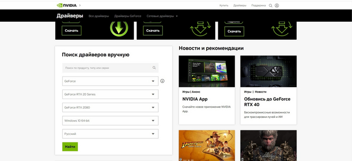 Заходим на сайт производителя своей видеокарты, находим модель своей карточки, скачиваем свежий драйвер.