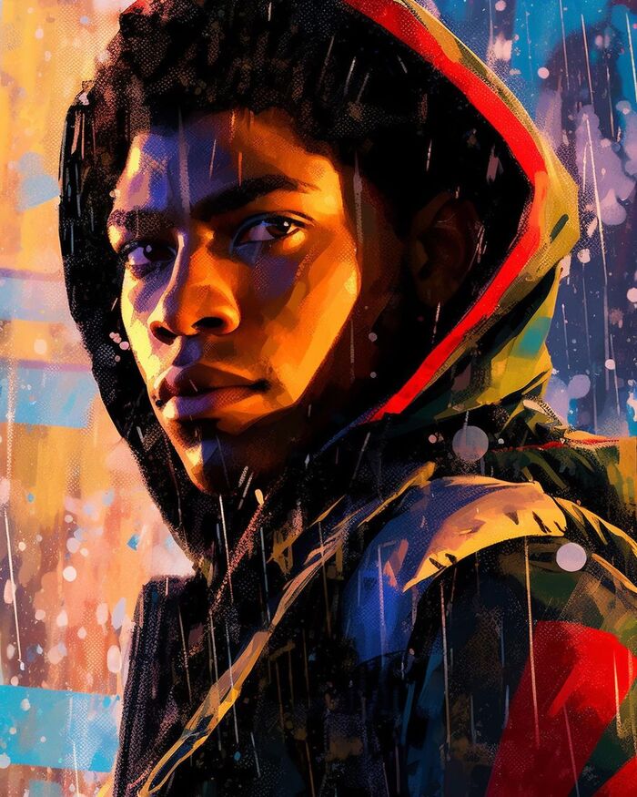 Midjourney, Промпт: «<Superhero> with ice cream --ar 2:3 --niji --v 5»