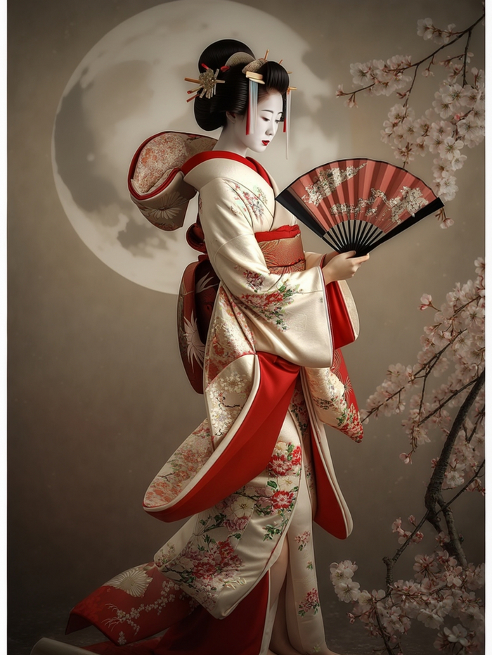 Нейрохудожник: Ворогушин Алексей Геннадьевич. Красивая гейша с боди-артом в современном восточном стиле. Все права на изображение имеются. Основа до обработки изображения сгенерирована в ideogram.ai