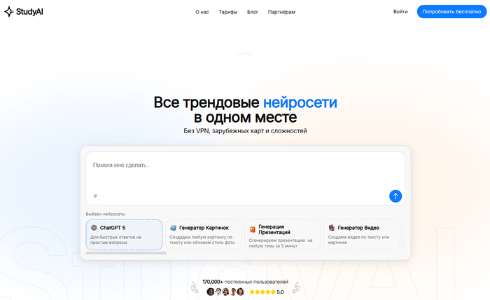 Для российских пользователей Study AI — оптимальное решение. Без VPN, без зарубежных карт, с русским интерфейсом и техподдержкой