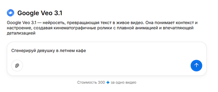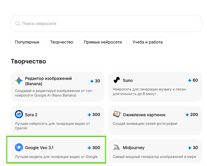 Шаг 5: В личном кабинете выберите Veo 3 из списка доступных нейросетей
