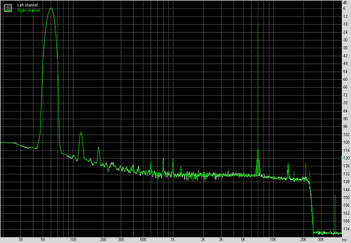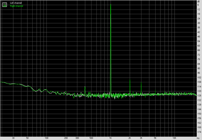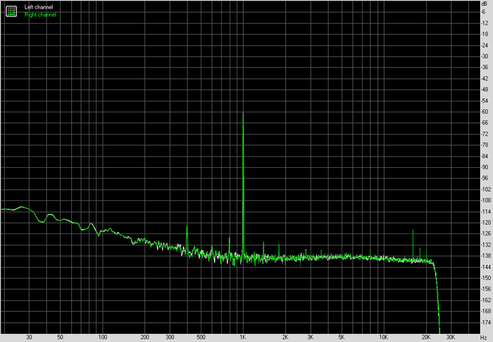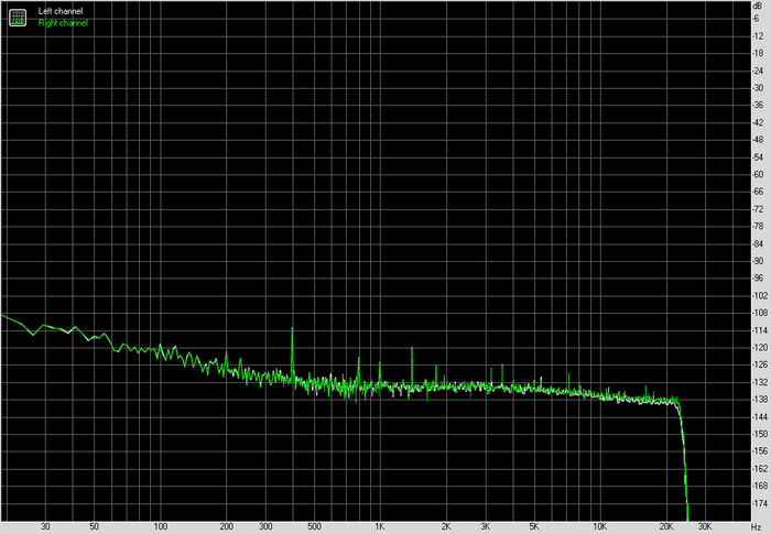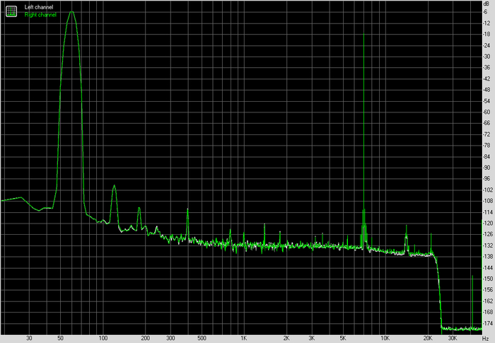 По шуму и динамическому диапазону результат ожидаемый для этого формата. Фон ровный, без паразитных пиков, без мусора в середине диапазона. Это важно не само по себе, а в контексте чувствительных наушников, где такие вещи вылезают быстрее всего.