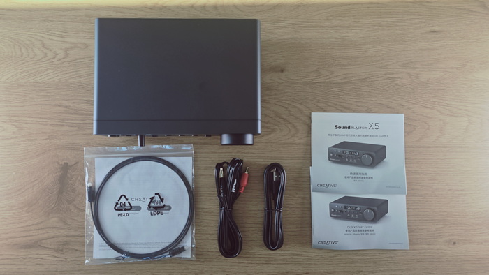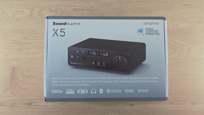 Коробка у Sound Blaster X5 оформлена сдержанно. Без броских лозунгов и без попытки удивить дизайном. Внутри устройство зафиксировано жестко, упаковка свою задачу выполняет.