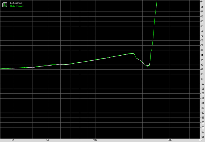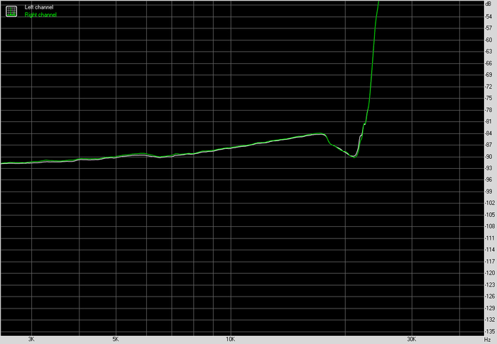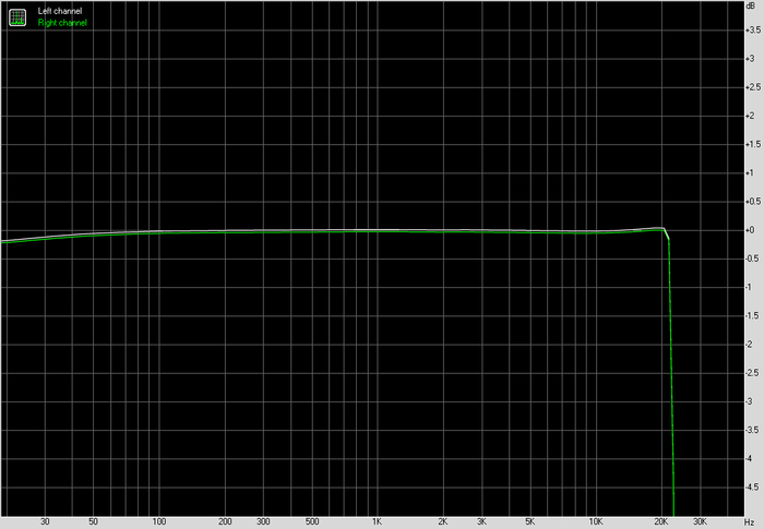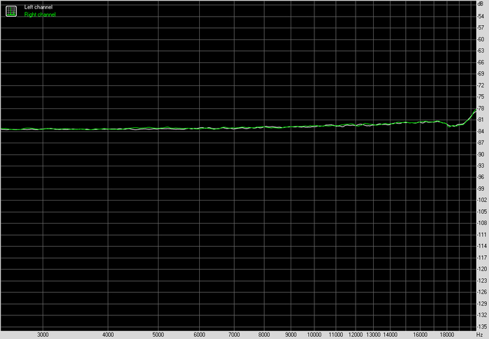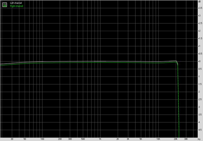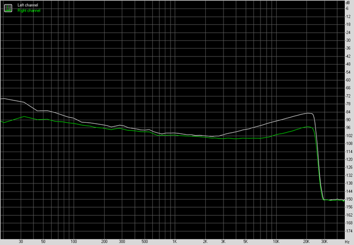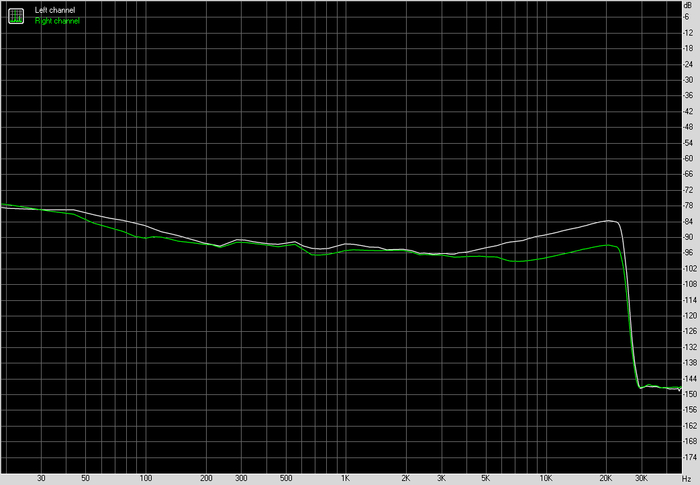 По частотной характеристике картина спокойная. В рабочем диапазоне никаких завалов и выпяченных участков. Левый и правый каналы идут близко друг к другу, без разъездов. Это не та ситуация, когда график хочется рассматривать под лупой. Он просто не вызывает вопросов.