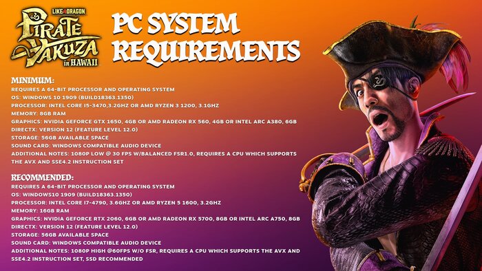Также, разработчики поделились системными требованиями Like a Dragon: Pirate Yakuza in Hawaii. Они подтвердили полную совместимость игры со Steam Deck, что порадует всех любителей портативного гейминга! 🎮✨