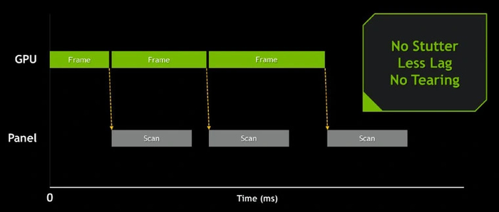 Тандем решает проблему появления размытости при FPS ниже частоты обновления панели. G-SYNC работает в диапазоне от 30 Гц до максимальной частоты, поддерживаемой монитором. Подсветка и овердрайв пикселей теперь адаптируются к этим условиям. Поэтому технологию вертикально-зависимого овердрайва на новых слайдах теперь называют «адаптивным овердрайвом».