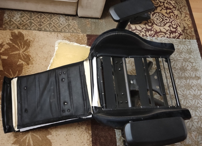 Приветствую читателей, писателей и комментаторов. Сегодня выпотрошил, а потом собрал обратно данное кресло, служащее мне с жаркого лета 2019 года. Постепенно мои килограммы участника клуба "кому немного до сотки" продавили сидуху, и я начал искать "а что у нея внутре?" и как до этого "внутре" добраться. Не нашел ничего, пришлось действовать в стиле "по ходу разберемся".