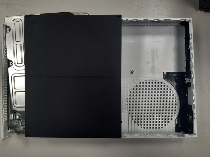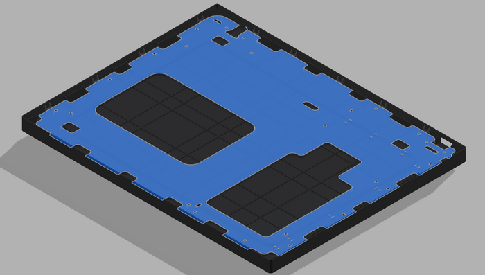 Разбираем корпус - он состоит из двух основных деталей - Нижней черной панели и верхней крышки: