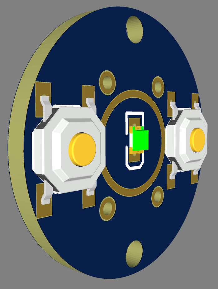 Круг в центре текстолита - посадочное место для пружины, выталкивающей кнопку в нулевое положение после нажатия. Кнопки на текстолите дублируют друг друга, повышая срок службы.