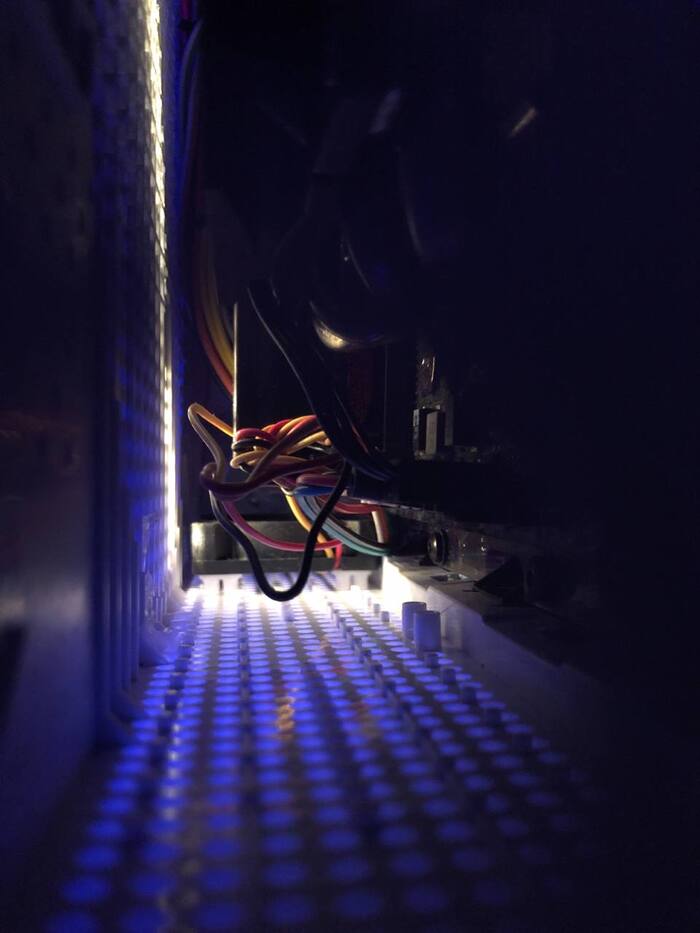 3 - Светодиодная панель внедряется в рассеиватель из белого полимерного пластика. Вся конструкция в свою очередь, туго входит в расщелину корпуса (бывшее место дисковода), и держится там на мертво, без клея и винтов. Подключается к разъему ARGB на материнской плате.