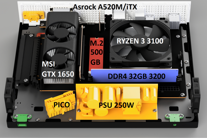 4 - Блок питания:Отдельно спасибо Григорию с YouTube канала POWER_ON, за разработку этого бесшумного, холодного, надежного и стабильного блока питания. Бонусом, Pico PSU снабжена защитой по каждой линии питания отдельно.