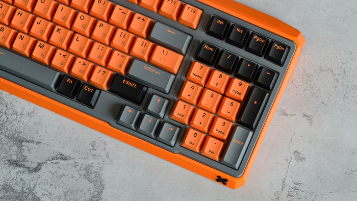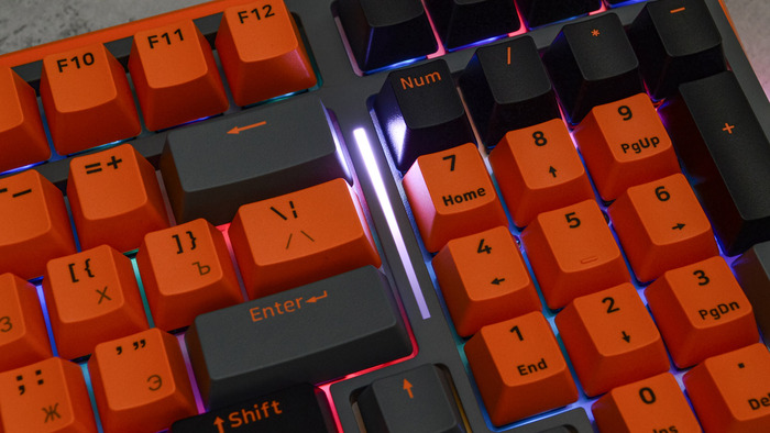 Кроме того, функциональные F-ки разделены на группы по 4 штуки – классика. Что касается именно раскладка, то здесь мы видим ANSI с широким левым Shift и одноэтажным Enter.