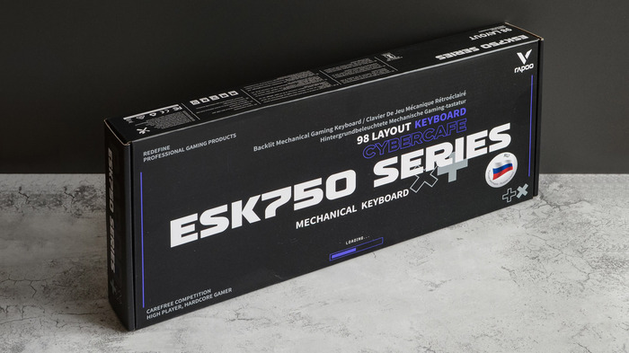 Rapoo ESK750-98 поставляется в черной картонной коробке с крупным обозначением модели белым шрифтом. Внутри коробки есть инструкция, а само устройство находится в пакете. Больше в комплекте поставки ничего нет.