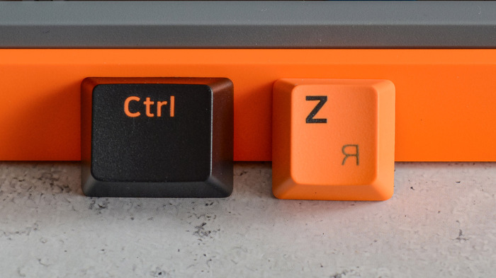 Обозначение служебных команд и латинские символы нанесены методом двойного литья, а вот кириллические простой темно-серой краской.