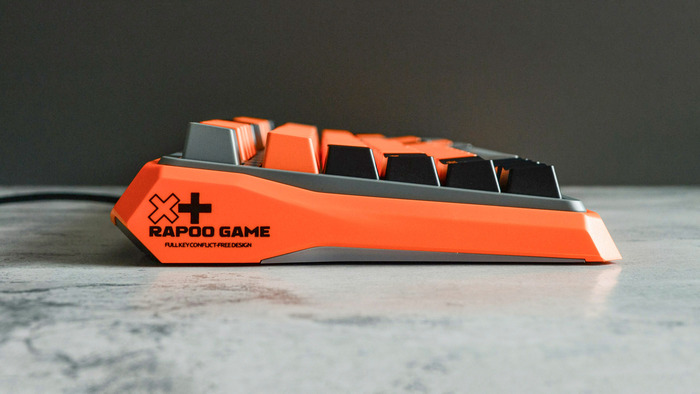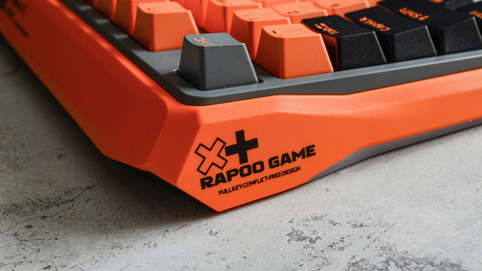 Rapoo ESK750-98 – максимально яркая и броская проводная клавиатура. Во всяком случае в той расцветке, что у меня – черно-серо-оранжевая. Внешний вид буквально кричит: «Чего же ты ждешь? Кликай на ярлык и погнали на две-пять-десять каток!»