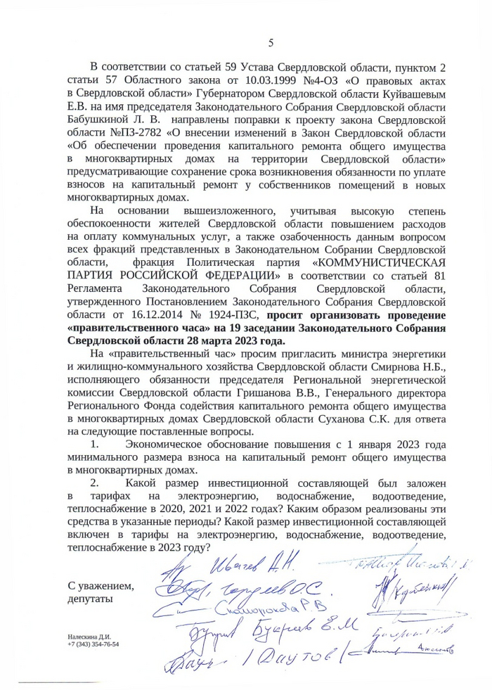 Фракция КПРФ в заксобрании Свердловской области из девяти человек потребовала провести «Правительственный час» по поводу роста тарифов ЖКХ. Отвечать на их вопросы придут министр ЖКХ региона, главы РЭК и капремонта.