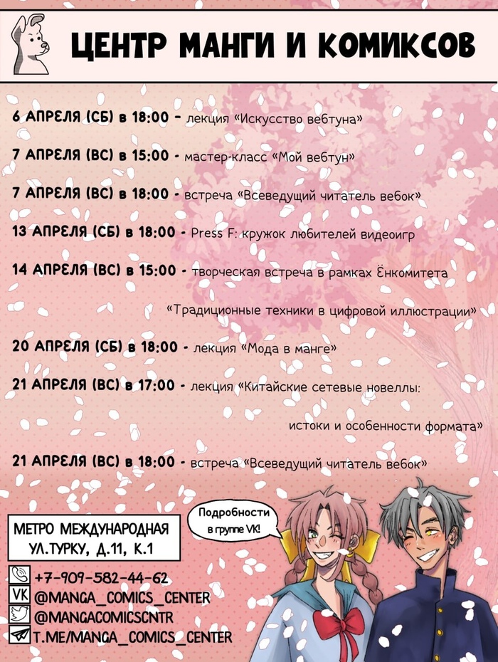 Второе, Центр манги и комиксов (https://vk.com/manga_comics_center), маленькое уютное местечко примерно в 16 квадратов, есть один стенд с комиксами, все остальное занимает манга (японские комиксы), маньхуа (китайские комиксы), манхва (корейские комиксы). В прошлое воскресенье я не знал куда хочу пойти, и жена выпинывала меня из квартиры, чтобы я отдохнул. Решил поехать в библиотеку комиксов засесть на диванчик и забуриться в какую-нибудь серию комиксов. В какой-то момент подумал, а почему бы и нет, и поехал в новое место, в центр, и не прогадал. В тот день, там проходило два мероприятия: первое мастер-класс «мой вебтун» и второе встреча «всеведующий читатель вебок». Чтож, это было здорово, вебтун - это южнокорейский цифровой комикс, обычно предназначенный для чтения на смартфонах. Хоть он предназначен больше был для художником и будущих комиксистов, это было увлекательно и мне было интересно. Вторым мероприятием был читательский клуб. Мы сидели друг напротив друга и обсуждали (я больше слушал, иногда, вкидывал шутки). Кстати, нашел там сокровище. Я люблю смотреть фильмы и один из моих самых любимых это «Ворон» 1994 г. режиссера Алекса Пройаса, и смотрите, что я там нашел. Я был единственным парнем среди этих девушек, так что, если ты, хочешь также, как в песне Neverlove – Тяночка, тогда тебе туда. Анонс мероприятий центра на апрель.