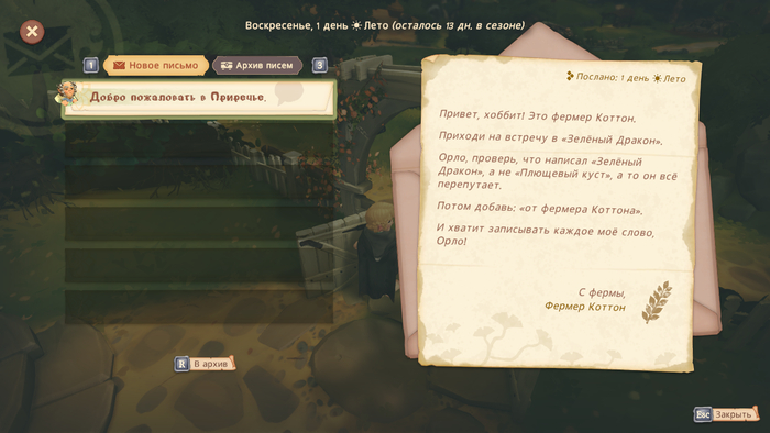 Если играли в такие игры как "My Time aat Portia" или "My time and SandRock" то знаете что такое "почта". Если же нет - приготовьтесь что первые дни писем не будет, но постепенно заслуживая репутацию в деревни даже красавицы-хоббитки будут писать вам!