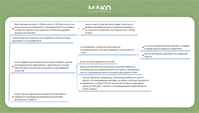 Фрагмент карты смыслов для посадочной страницы с рамами ручной работы