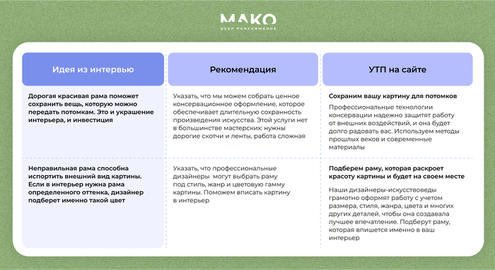 Багетная мастерская хотела продавать рамы ручной работы за 500 000 Р, а покупали пластиковые багеты за 1000 Р. Переделали сайт и увеличили продажи втрое