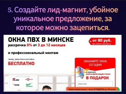 Создайте новый прототип сайта или внедрите ключевые изменения на существующие посадочные: основные блоки, офферы, маркеры доверия. Базовый принцип: просматривая страницу, клиент должен узнать свою ситуацию и получить ответы на вопросы.