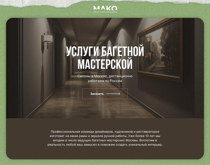 Мы предложили переработать сайт. На главную вынести самые маржинальные услуги, подробнее о них рассказать. А также улучшить продуктовые страницы, посвященные рамам ручной работы и реставрации икон.