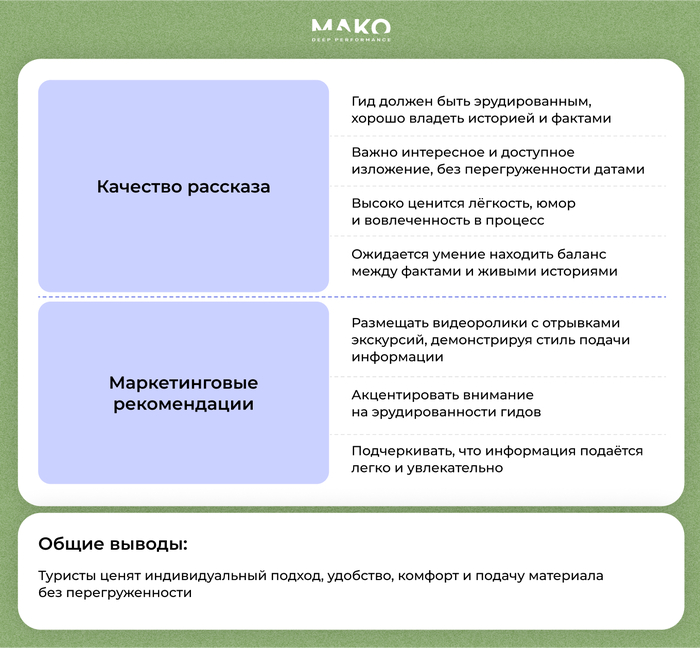 Проанализировали отзывы о турах компании на разных платформах. Составили список, на что люди обращают внимание при выборе.