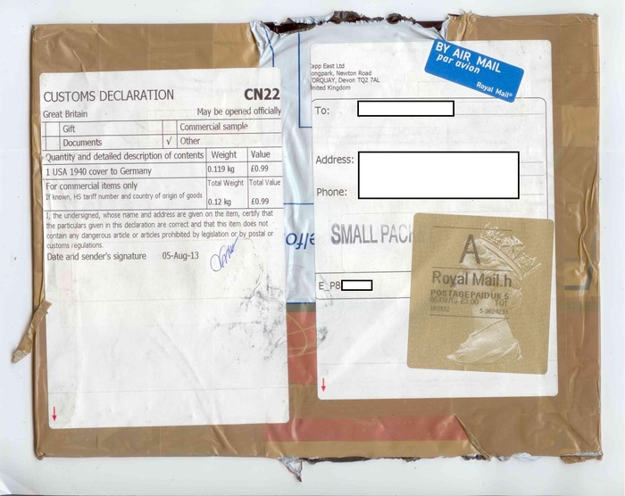 Вскрыв конверт обмотанный скотчем, внутри был найден еще один конверт. В котором лежала часть папки для марок.