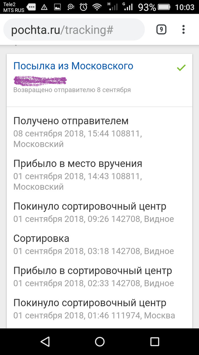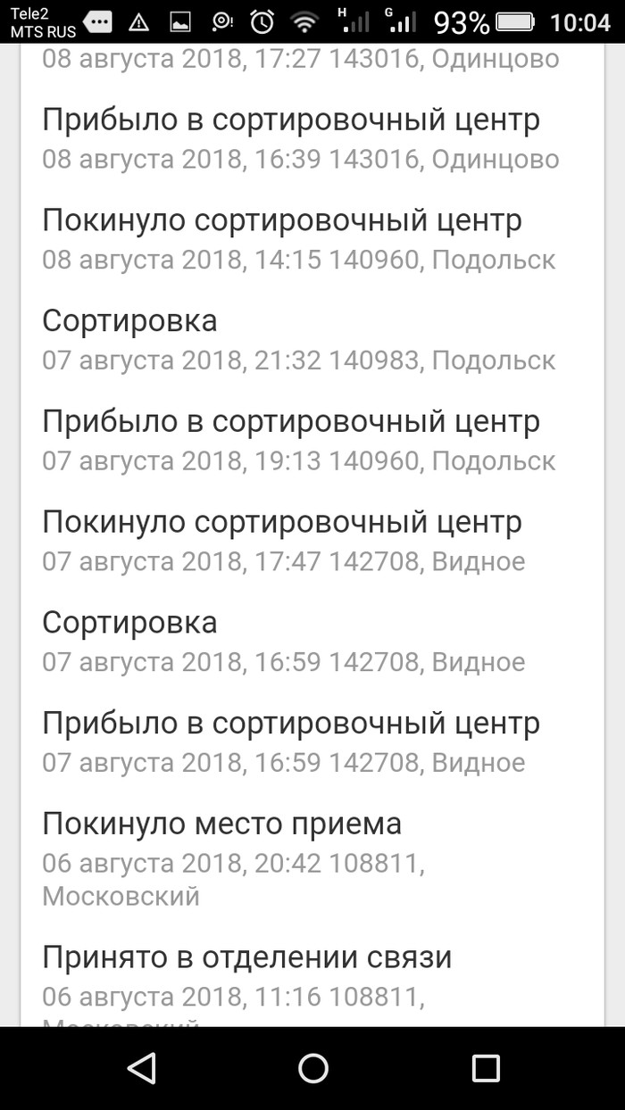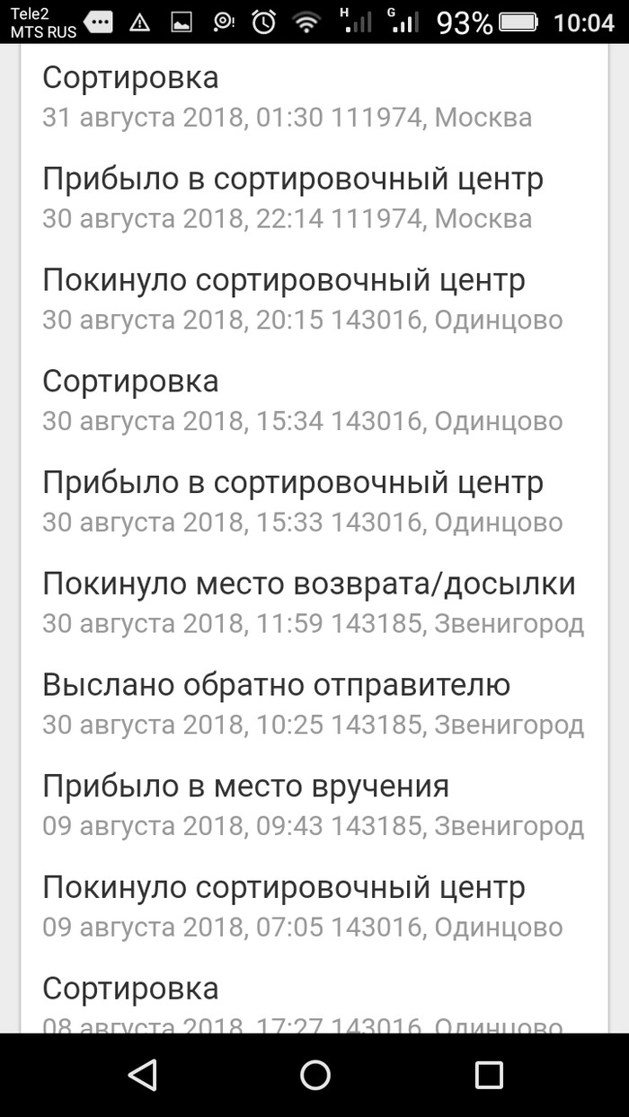 1. Летом в отпуске я купила приятельнице памятный сувенирчик. Она очень радуется, когда в почтовом ящике, помимо квитанций и спама, находит приятные весточки от друзей. Отправила сюрприз посылкой, еще вложила открытку. За отправление с меня взяли около 200 рублей. За месяц моя посылка побывала во многих городах Подмосковья (см. скрины) и вернулась. Оператор сказала, что адресат ее не забрал. Из истории событий стало ясно, что вместо индекса отправления 143180 посылку доставили на пункт 143185, она там полежала и вернулась. Сюрприз не удался. Предложили только два варианта: оставить посылку Почте навсегда или забрать за 200 рублей (примерно, чеков и пакетов не сохранилось). Все понятно, шантаж-мантаж, но это же не для Почты покупалось(( Пришлось снова заплатить и забрать. Зато сувенир был подарен.