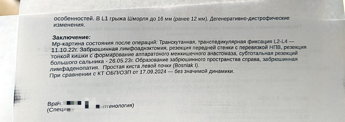 В понедельник был на кт, изменений никаких нет по онкологии - все так же стабилизация, только нашли грыжу Шморля.