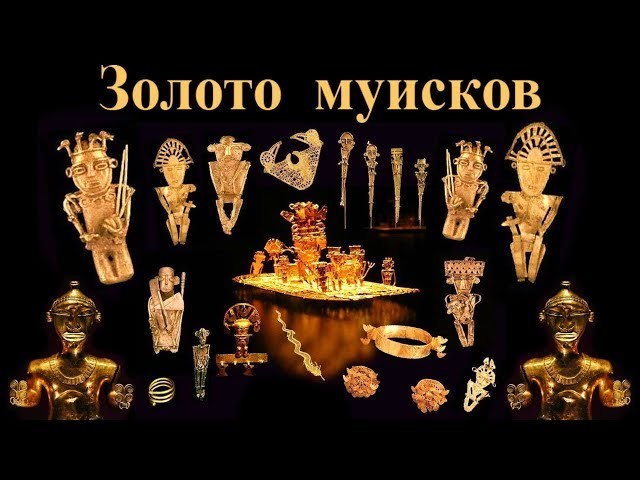В центре тот самый «Плот муиска» из легенды, сделанный из золота. Он был обнаружен в пещере возле колумбийской столицы в 1856 году. Хранится в "Музее золота" в Боготе.