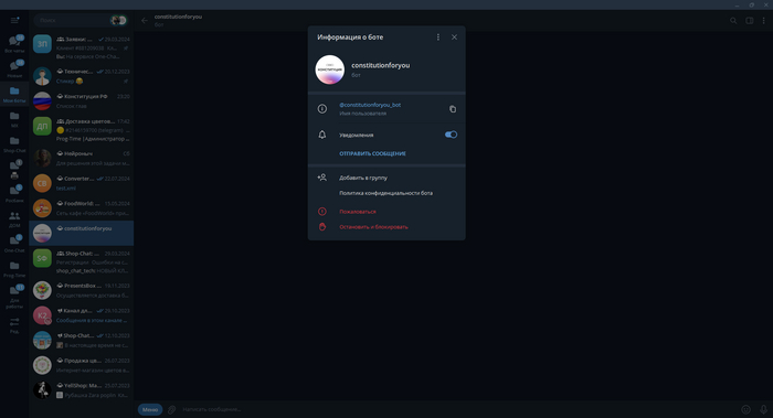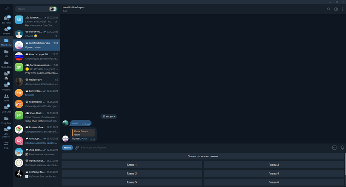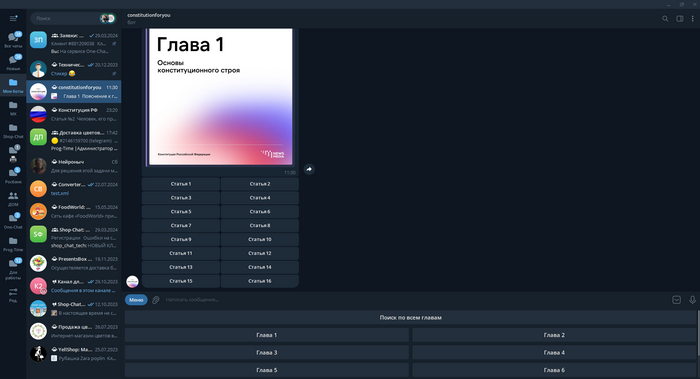 Для бота конституции я также подключил административную панель в которой можно редактировать статьи и главы конституции.
