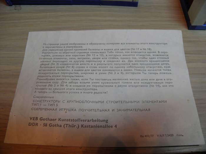 Уж не знаю, мечтал ли об этом конструкторе каждый пионер, но обычно игрушкам из ГДР это приписывают. А я, хоть и не был пионером, хотел себе такую игрушку. Теоретический можно купить конструктор из ГДР, аналог из СССР, и даже новодельный вариант. Но как обычно бывает на барахолках - берешь что есть - или не берешь.