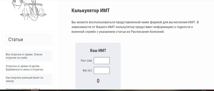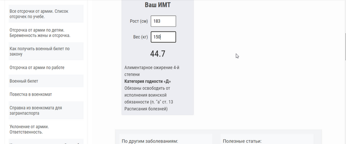 В поисковике забиваем "Как определить ИМТ для армии" ну или что-то типа того