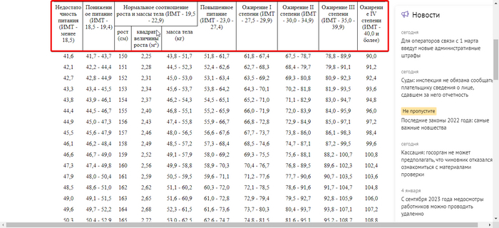 Имейте в виду, что показатели ИМТ в разных возрастных категориях при одних и тех же параметрах веса и роста отличаются. Проверяйте для своей возрастной категории.