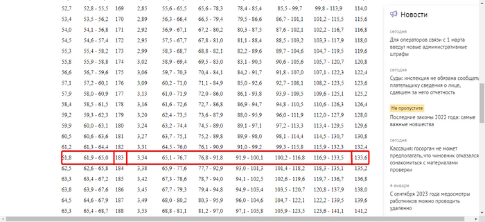 Обратите внимания в шапке таблицы написано какой ИМТ соответствует какой степени ожирения либо недостаточности питания. Теперь, как понять мой ИМТ? Вообще, вы в принципе можете не проверять ваш ИМТ, так как его определяет ваш лечащий врач-эндокринолог. В выписаном эпикризе рядом с диагнозом ожирение он должен быть указан, но если вы такой же дотошный как и я, то листаем табличку ниже и запоминаем где в шапке какие столбцы были