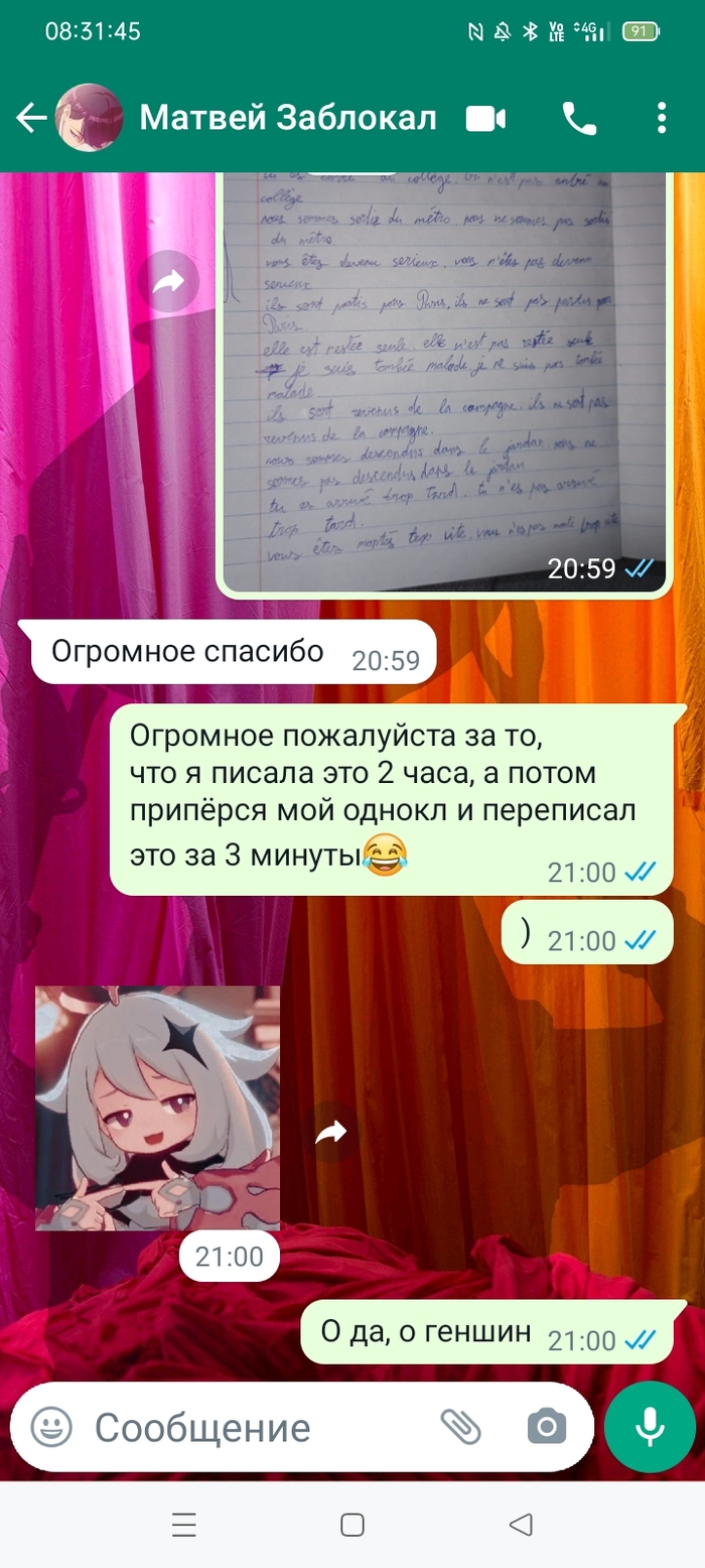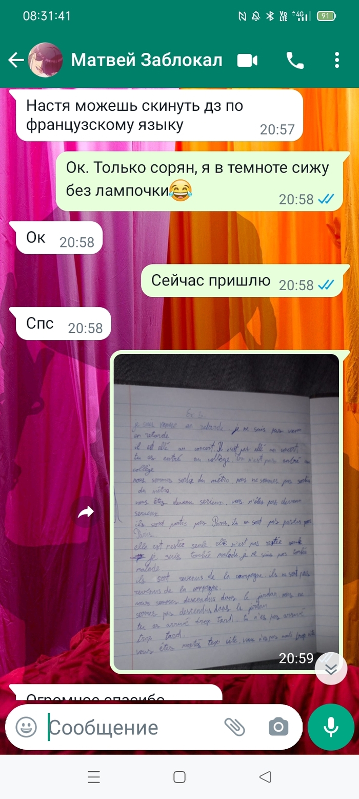 А это о том, что одноклассник попросил списать огромное дз по французскому.