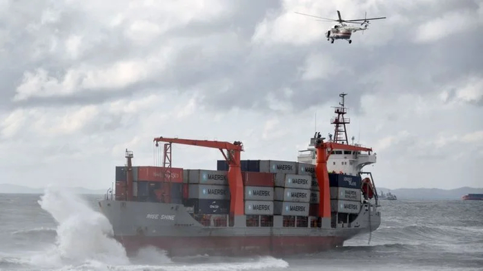 В районе мыса Козина около порта Находка на юге Приморского края во время шторма сел на мель контейнеровоз Rise Shine, который ходит под флагом Панамы. По данным из открытых источников, длина судна составляет 101 м, ширина - 19 м.