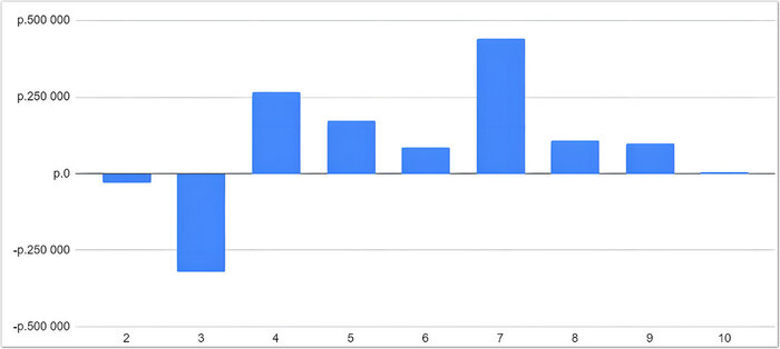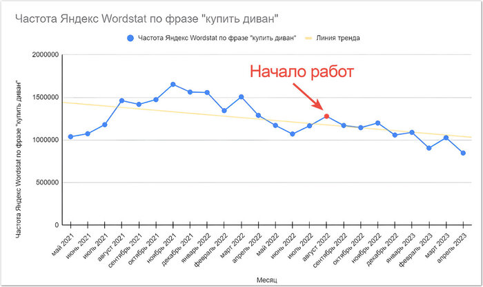 Если не считать небольшого спада в августе 2023, KPI мы исправно выполняли.
