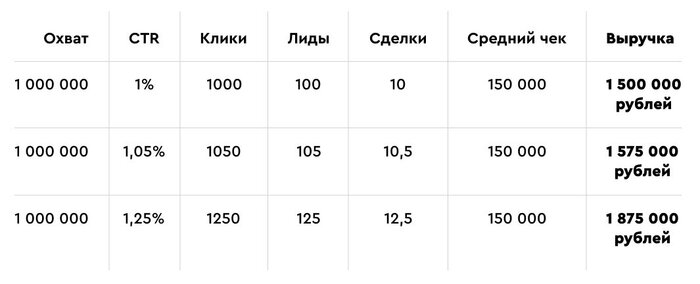 Цели должны быть выражены в цифрах. Например, получить 100 заявок в месяц по цене не выше 700 р. Или получить 35 квалифицированных лидов стоимостью до 2 500 р. Или сделать 10 продаж с рекламы при цене клиента до 7 000 р.