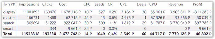 Когда рекламная кампания оценивается по количеству продаж, обязательно нужна настройка CRM и сквозной аналитики. Иначе вы не сможете определить, какая рекламная кампания (объявление, ключевая фраза) принесла продажу. Следовательно, не получится оптимизировать рекламу. И спрашивать с подрядчика за результат тоже не выйдет, так как без данных CRM и сквозной аналитики он будет как слепой котёнок.