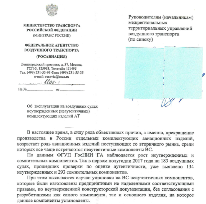 — Наблюдается рост неутверждённых и сомнительных комплектующих, поступающих со вторичного рынка, — пишет Кудинов. — По данным НИИ ГА, в первом полугодии 2017-го на 183 воздушных судах уже выявлено 134 неутверждённых и 293 сомнительных компонентов.