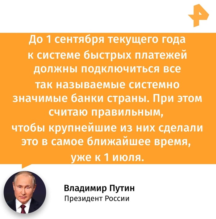 Напомню, что до 1 сентября текущего года к системе быстрых платежей должны подключиться все так называемые системно значимые банки страны. При этом считаю правильным, чтобы крупнейшие из них сделали это в самое ближайшее время – уже к 1 июля.