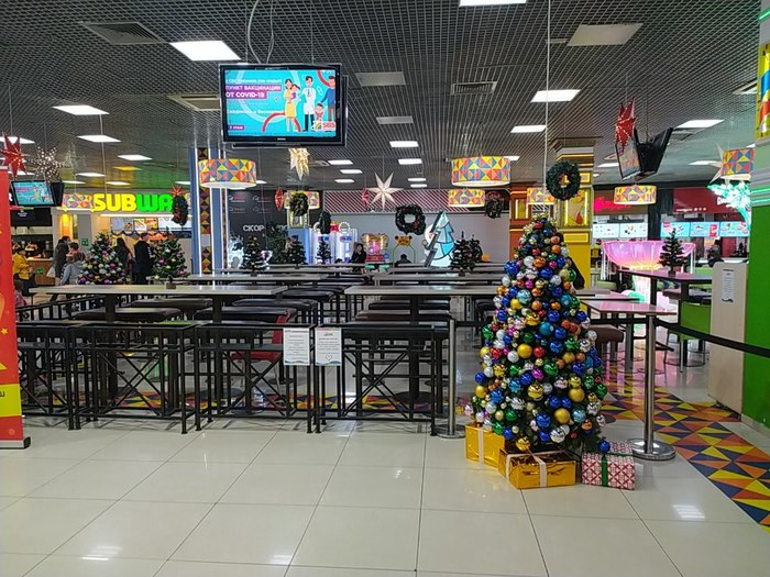 Ну и вишенка на торте - соблюдение санитарной дистанции (на фото). Ресторанный дворик закрыт, но все рестораны работают навынос.
