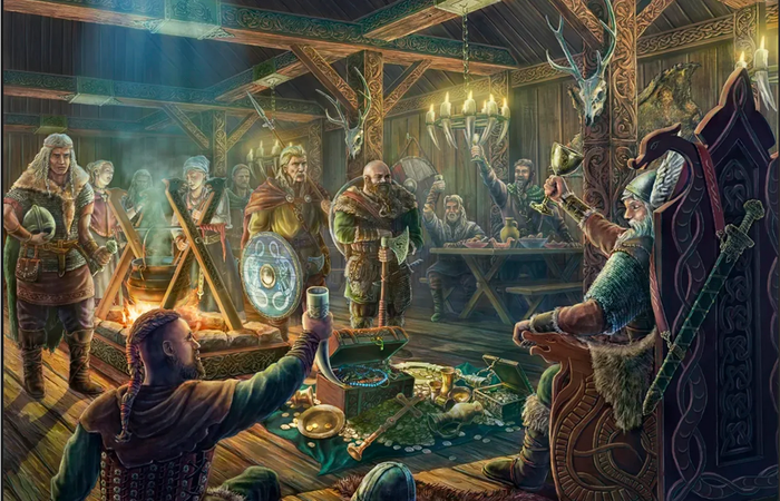 Вообще вся книга сплошь состоит из охренительных историй, связанных между собой, так, что, в конце концов, они завязываются в один узел с трагическим концом. Но одна история меня всё-таки поразила. Хрольф Краки отправился к конунгу свевов Адильсу, чтобы вернуть себе отцовские сокровища и отомстить за его гибель. А, чтобы было не палевно, он и его отряд отправились в путь зимой, а по пути набрели на загадочный хутор и не менее загадочного хуторянина, который позвал их в свою землянку, скрывавшую целый пиршественный зал, подверг гостей всяческим магическим испытаниям и дал Хрольфу ценные советы, которые, вероятно, спасли ему и его спутникам жизнь там, куда они отправились. Что было не так-то просто, потому что Адильс был не только конунгом, но и языческим жрецом, и крутым колдуном. И вот вроде бы с хуторянином расстался Хрольф друзьями, и на обратном пути тот встретил своих прошлых гостей не менее радушно, и всё было хорошо…пока у Хрольфа не взыграли «вьетнамские флешбеки». И вот, как это было, и к чему привело: