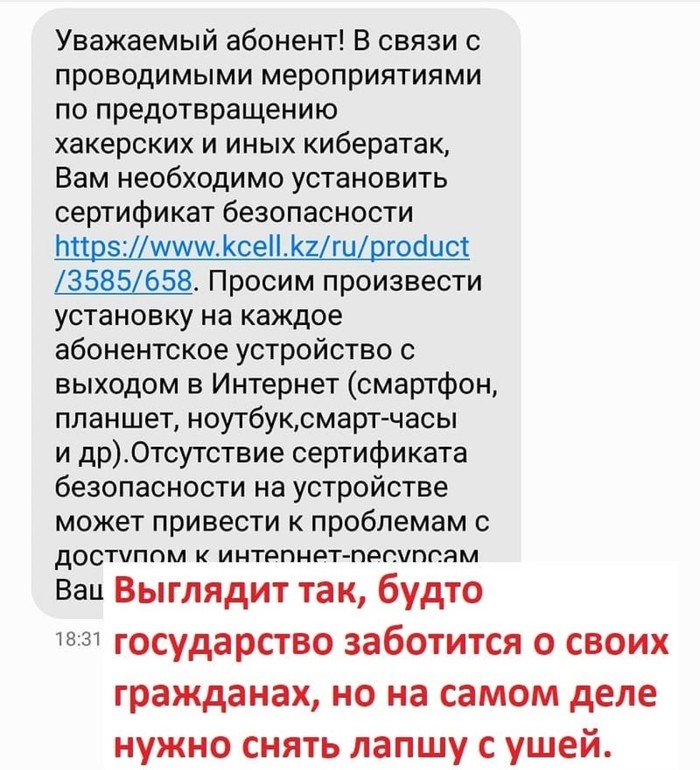 Вчера всем казахстанцам от сотовых операторов на телефон пришло сообщение