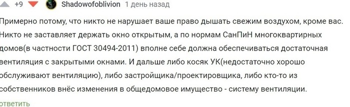 Выхожу, а там дым коромыслом, хоть топор вешай! Дышать противно, и здоровье угробить можно. Сегодня вообще цирк: работник УК прошёл, закрыл все окна, хотя в подъезде накурено. Я открыл форточку, он не поленился подняться и наорал на меня — мол, у него задание закрывать окна.
